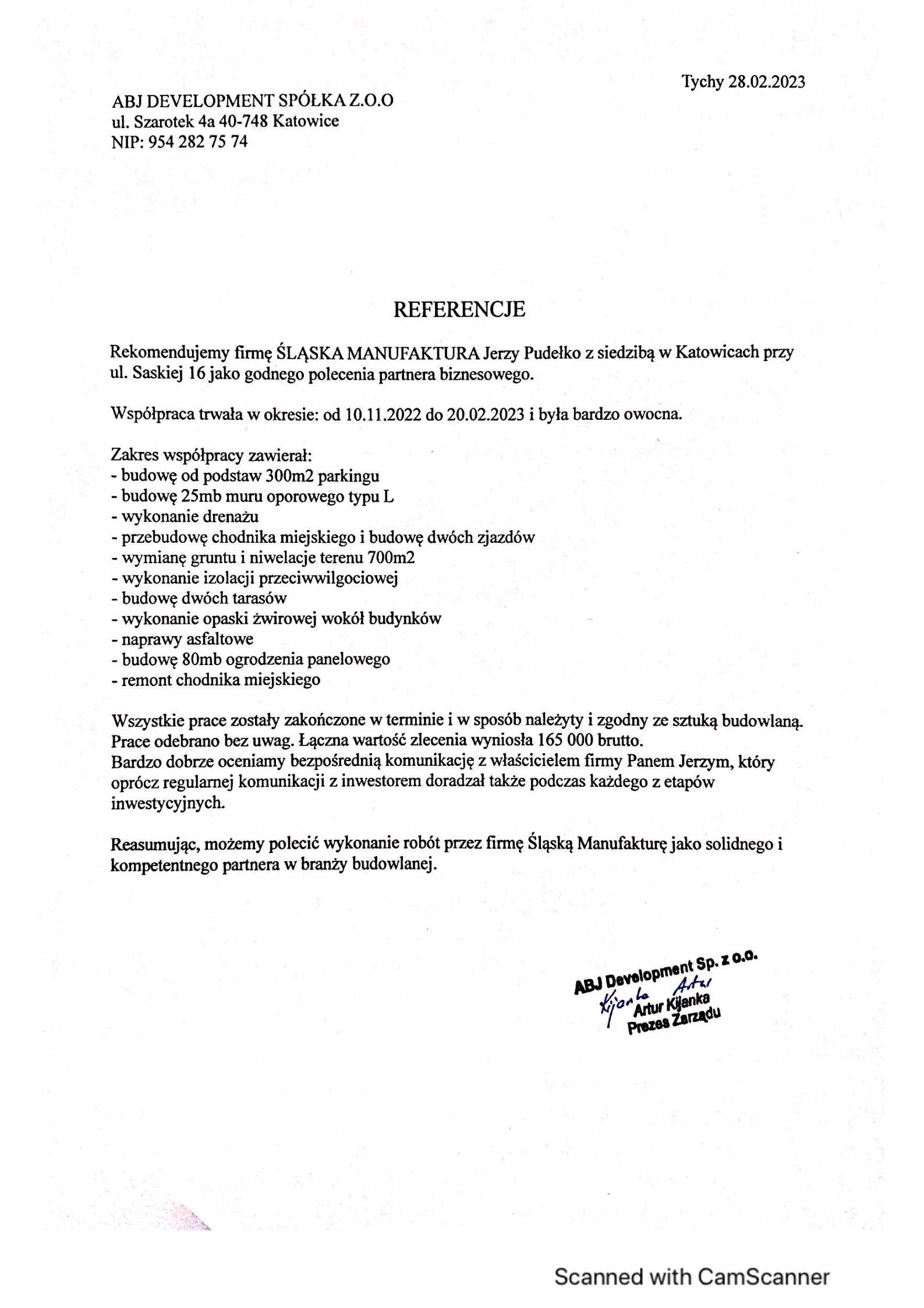 Nie przywiązywaliśmy jak dotąd do tego wagi, ale coraz częściej inwestorzy pytają nas o referencje w związku z tym, postanowiliśmy że od tego roku że będziemy je zbierać i publikować na naszej stronie. Jedną już mamy 🙂